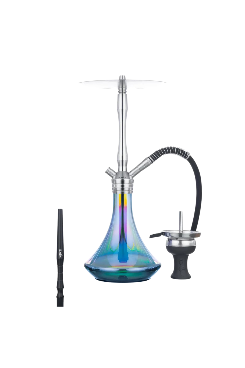 Pachetul contine, narghilea Aladin Mvp, cleste pentru carbuni, furtun din silicon + mustiuc din aluminiu, creuzet + sita carbuni, garnitura furtun, creuzet si manual de instructiuni.