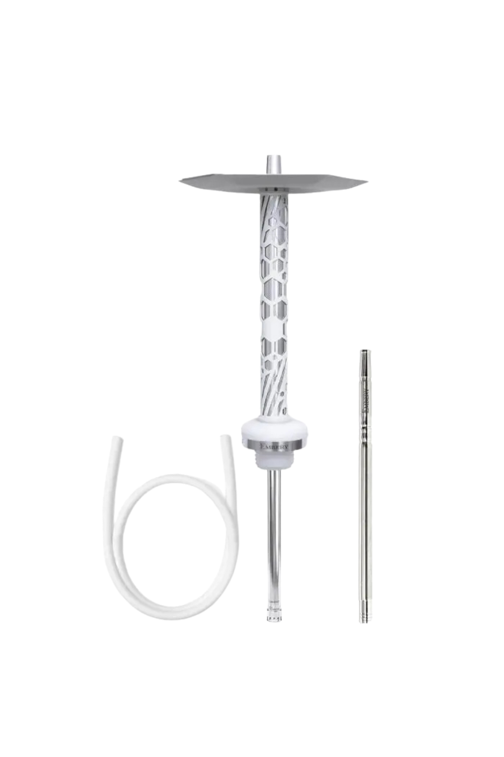 Pachetul contine, narghilea EMBERY, cleste pentru carbuni, furtun din silicon + maner din aluminiu si manual de instructiuni.